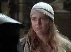 [35] Gabrielle's fighting skills are getting better. When Xena frees her hands when she is about to be executed, Gabrielle flips over David, grabs the axe, and frees David. She then manages to hold a soldier back without slicing him until he drops his staff in favor of the axe. Gabrielle, of course, takes the staff and beats him silly. She also mounts up behind Xena pretty quickly. Either they have been practicing that move or do it rather often.