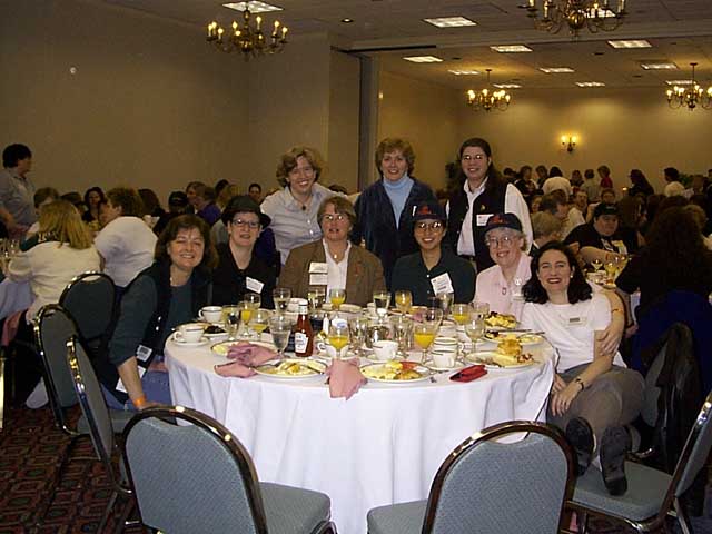 Saturday was my favorite day. It started with the Bard Brunch, which was the highlight of the entire convention for me. WHOOSH was able to sequester a table and I was honored by the company of the entire WHOOSH Executive Committee, two editors, a contributing author, the guest of an assistant editor and TWO DATES for Ms. Betsy Book (what a gal!). The Brunch was a very pleasant way to start the day. I appreciated the chance to personally thank the Executive Committee for their hard work and dedication in such a wonderful environment. The highlight of the event was the charity auction. After the Bard's Brunch I schmoozed at the actual convention and then worked up to the parties galore which peppered the Pasadena hotel district that evening. Beth Gaynor even let me use her newly acquired "Janice Covington model" whip. A good time was had by all.