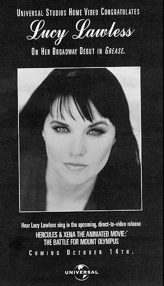 - [16] Standing ovation. At the curtain call, the crowd jumped to its feet, cheering wildly for Lucy. She looked a little "gobsmacked" by the response, but she deserved it because she worked so hard and did a great job. Nobody yelled out the Xena battle cry either, for which we were glad, because this was a Lucy thing and not a Xena thing. When the time is right, the Xenites can be a pretty rowdy bunch (the convention), but everyone acted in a mature manner in the theater because we all knew how important this is to Lucy, and we hope she knows that we appreciate her sharing her talent and admire her not only for portraying Xena but will truly support her in whatever other roles she chooses to play.