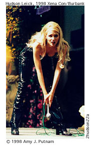[126] Those at Burbank will recall that Hudson Leick was introduced by a short film. I guarantee you that 99.99999% of those present have never seen that film before, and will never see it again. What was it? It was a promotional reel for Hudson specially made by the illustrious Editor Robert Field. Rob put this together for Hudson so agents, directors, and other interested parties could see a sample of her work. In my opinion, it's a brilliant piece, and combines Hudson's abilities to be physical, dramatic, and even to a certain extent comedic. It shows Hudson at her best (at least until MATERNAL INSTINCTS [#57] and THE BITTER SUITE [#58] came along) and we were all very fortunate to see this unusual and masterfully assembled piece.